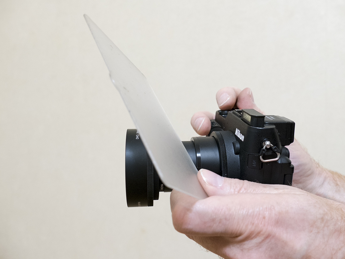 Да я так... Просто идеей хотел поделиться. Дело в том, что пластину можно под углом ещё расположить, добиваясь освещения как бы сбоку. У меня при накрученной макролинзе она ещё и загораживает свет от вспышки, а рассеиватель помогает "приподнять" свет от неё. Сделал фото для иллюстрации. Сильно не ругайте за занудство.