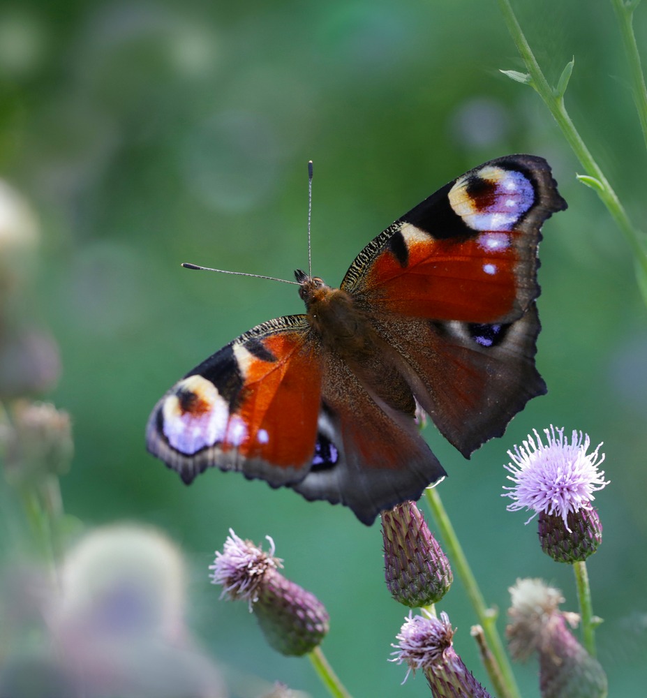 Опушка леса где-нибудь на склоне реки с цветущим бодяком на сухих лужайках, либо посконником ближе к заболоченным ольшанникам с примыкающими зарослями крапивы - желанный дом для этой бабочки. В прошедшем году ей пришлось немножко поделиться своей территорией с перелётным адмиралом, украсив вместе с ним благоухающие ароматами полянки.