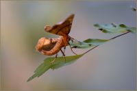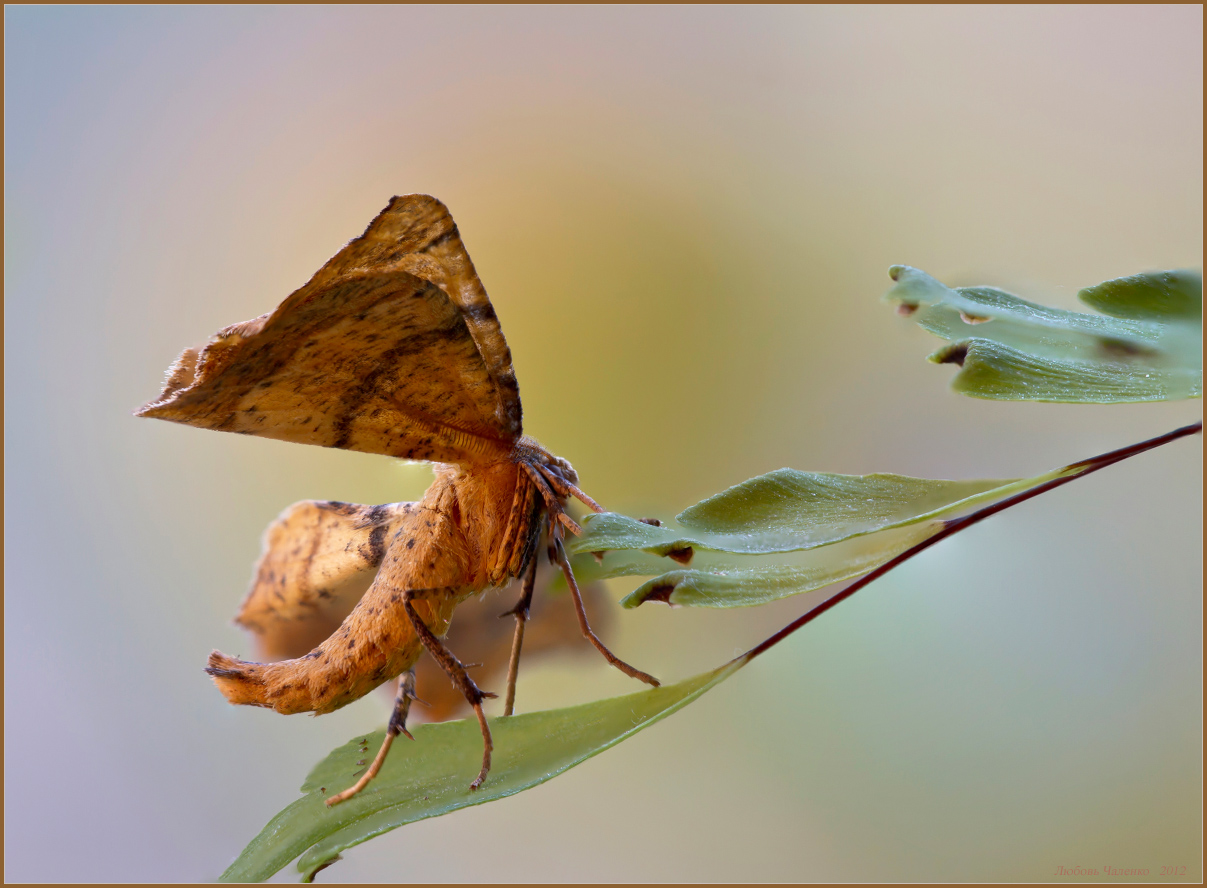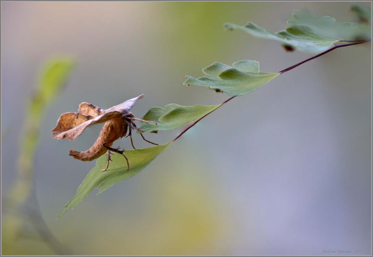 Встретила интересную бабочку, днем сидела на растении и прятала глаза от света, название не знаю, наверное, ночная.
