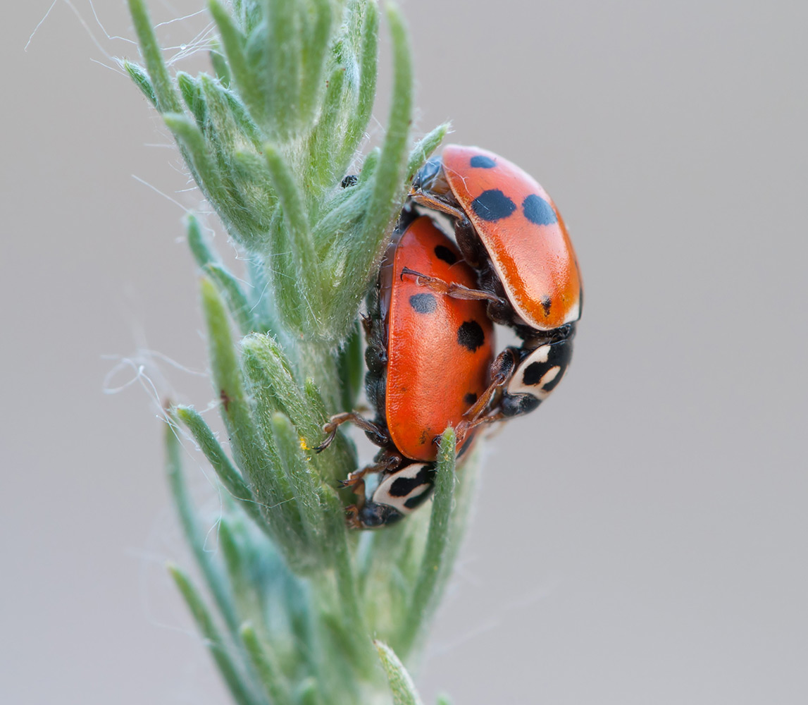 первый раз удалось заснять божьих коровок со штатива да при мягком свете (сумерки). второй снимок- стекинг 5 кадров.