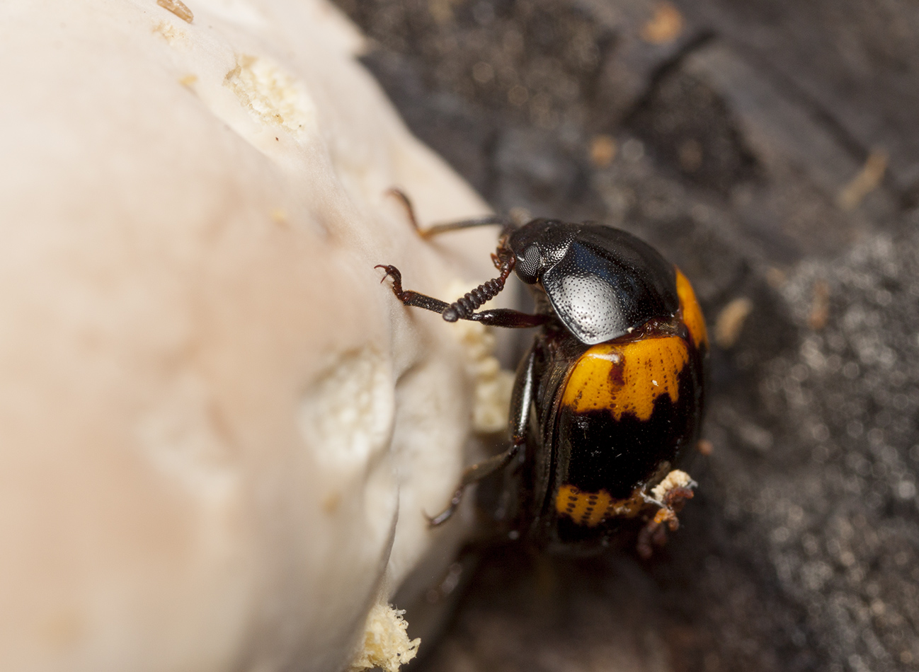 Вернулся к трутовику http://macroclub.ru/gallery/showphoto.php/photo/233615/cat/all/limit/all Гуттация не наблюдалась, а жуки были активны. То там, то сям грызли трутовик, оставляя на его поверхности ямки, уползали в проделанные в теле трутовика ходы, снова выходили на поверхность, знакомились и дружили.