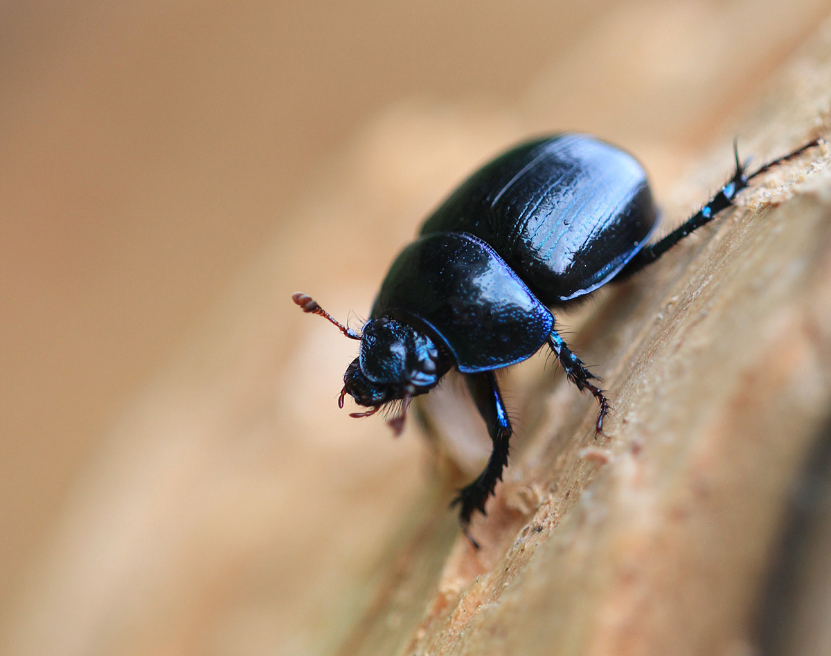 Жук навозник (Geotrupes stercorarius) отличался не только умом и сообразительностью, но и изрядной прытью. Пришлось посадить на пень и, пока он размышлял над своей нелегкой судьбой, фотографировать.