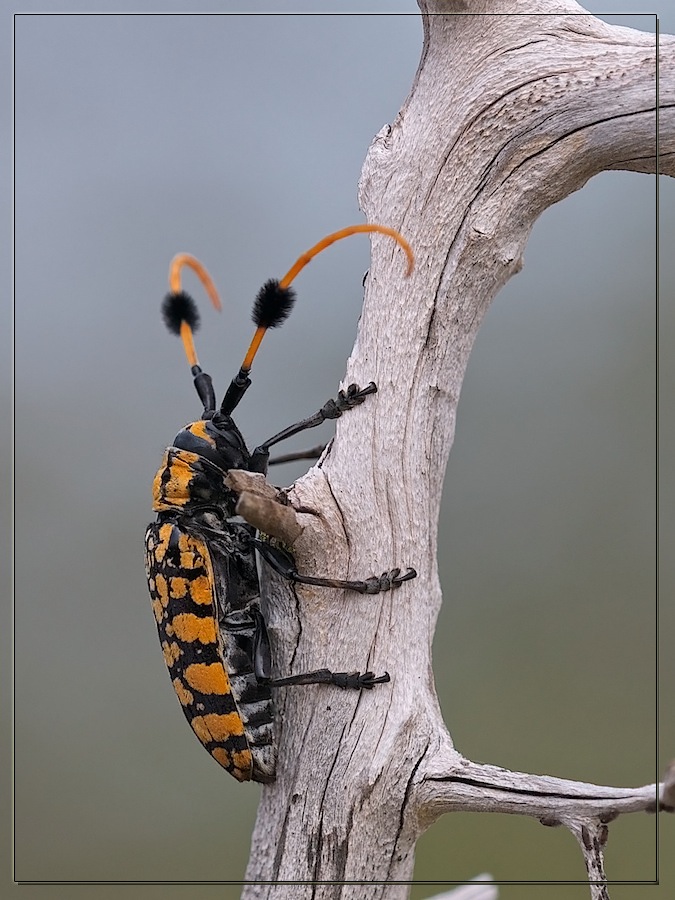 Один из очень симпатичных усачей с необычным украшением усов Aristobia approximator (Thomson, 1865). Размер около 4 см, встречался нами несколько раз как в Лаосе так и в Тайланде. В данной серии присутствуют снимки из обоих регионов, в Тайланде этот усач был неоднократно замечен на кустах желтой мальвы, цветами которой, видимо взрослые особи питаются.