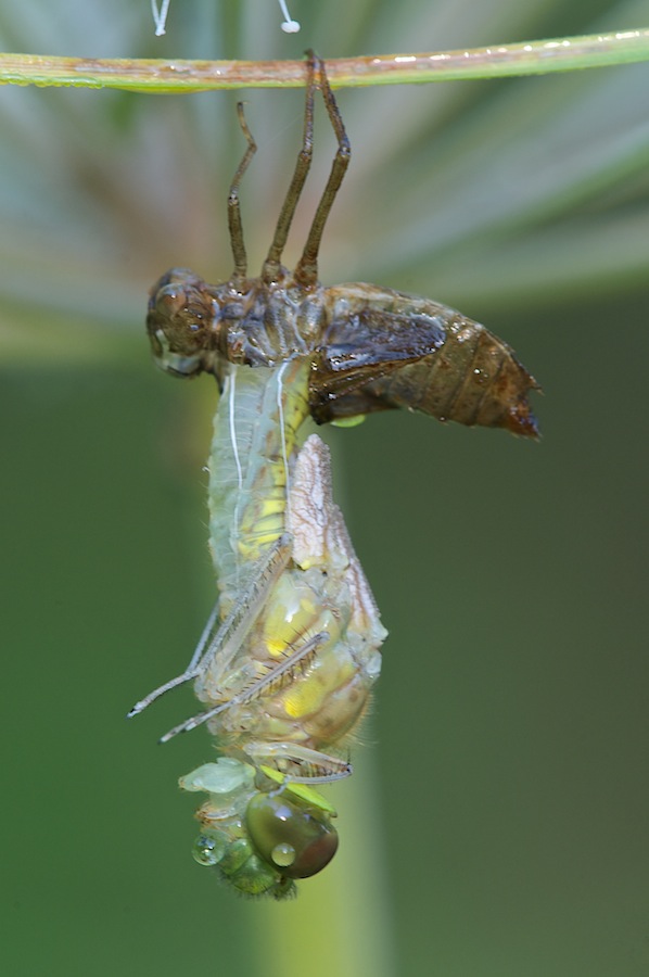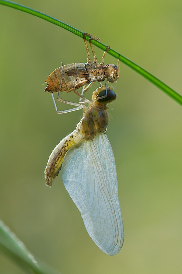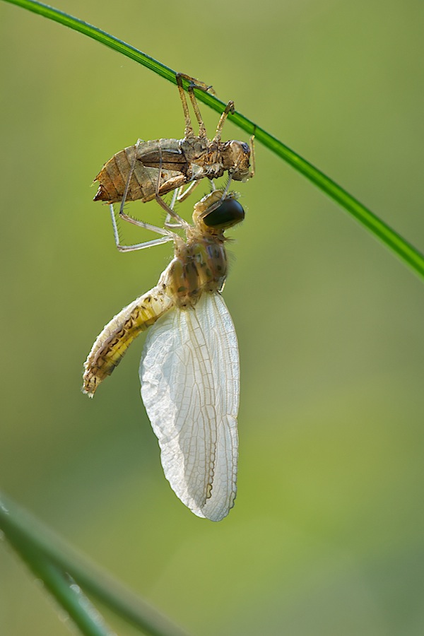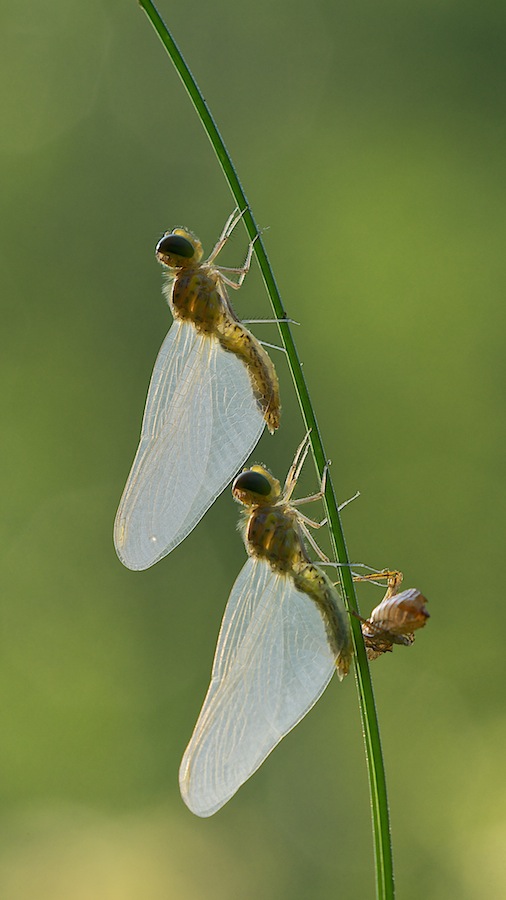 Спасибо! Личинок стрекоз, на этот раз, было довольно много и можно было наблюдать весь процесс с самого начала. Под конец я даже немного "похулиганил" (фотка №10), пересадил двоих, уже расправивших крылья, на одну ветку Фотка №9, сделана в этом же месте, только пару недель назад, тогда застал уже финальную часть и личинка была только одна.