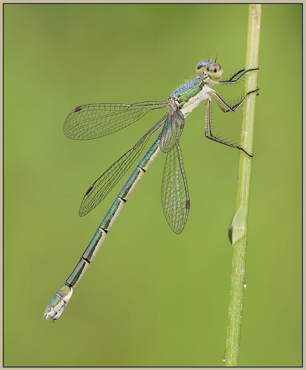 Не так-то все просто, я столько стопок снял, но во всех стопках, где крылья поместились полностью - стрекоза сильно двигалась. Это была мучительная съемка, я пересаживал стрекоз на этот стебелек около 20 раз. Все время либо они потом быстро улетали, либо им кто-нибудь мешал. Сначала на этом стебельке начали спариваться две очень маленькие мушки и побеспокоили стрекозу, которая сразу улетела. Потом сверху приполз маленький червяк и начал щекотить стрекозу, от чего та задергалась. Так что я склеил бы, да не из чего.