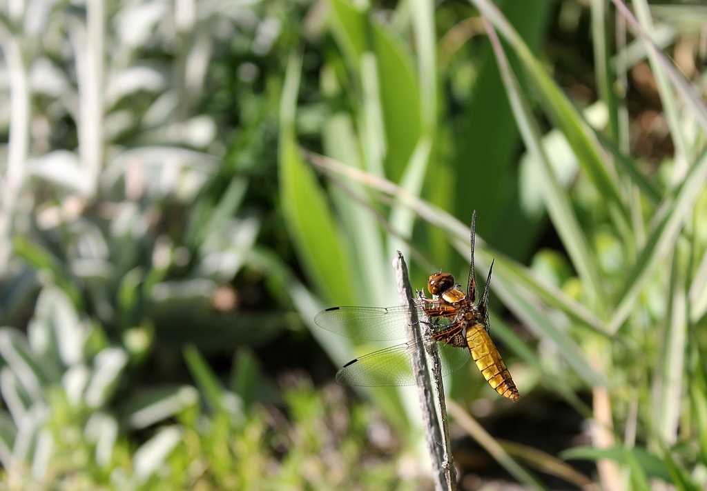 Наконец-то! Как-то раньше не удавалось мне подкрасться к стрекозам на достаточно близкое для съёмки расстояние. А эти так порадовали - просто-таки с удовольствием позировали (такое было впечатление) - и поодиночке, и вдвоём, и на разных присадах, и на одной - в паре. И такие они были золотые в ярких солнечных лучах - просто олицетворение лета...