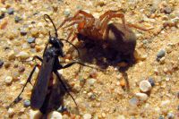 Кто-то из дорожных ос (Pompilidae). Похож на представителя рода Anoplius. См., например,