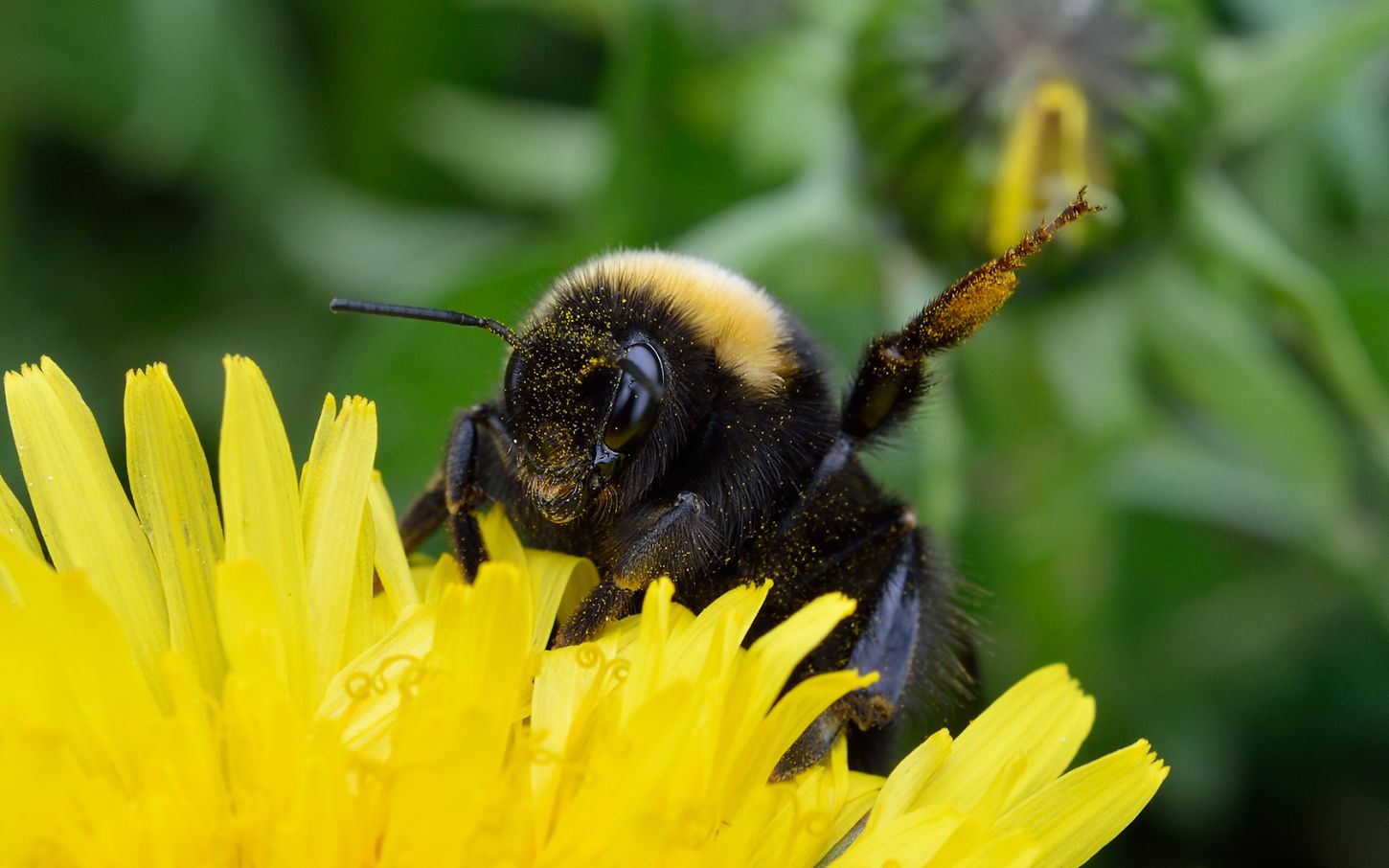 Шмель уютно дремал посреди одуванчика.