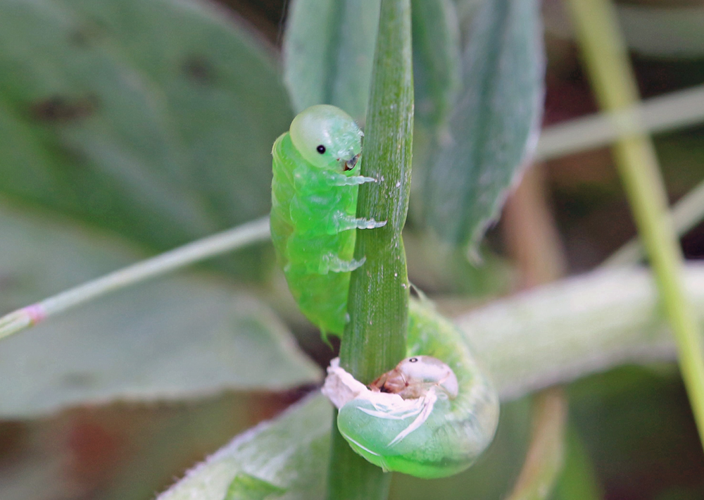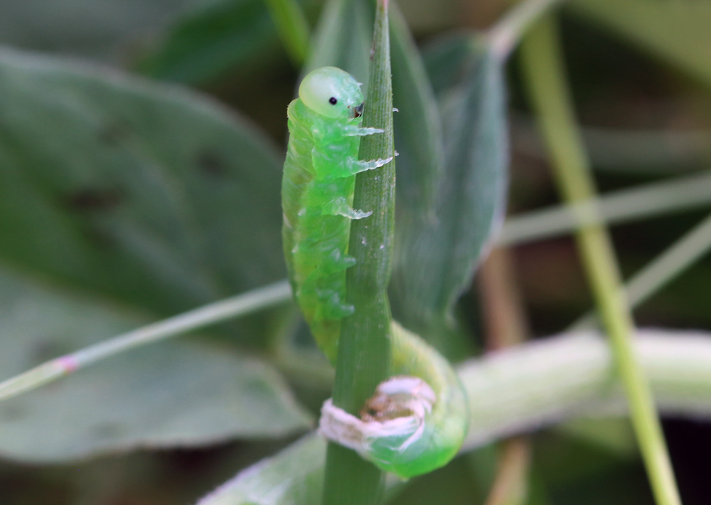 Все произошло очень быстро.Заметил объект в характерной позе на травинке, успел только срезать ножницами травинку, на которой он сидел и опустить пониже в траву (по причине довольно большего ветра),как процесс пошел. Пришлось снимать с рук, штатив ставить было некогда. Все мероприятие переодевания заняло пять минут.