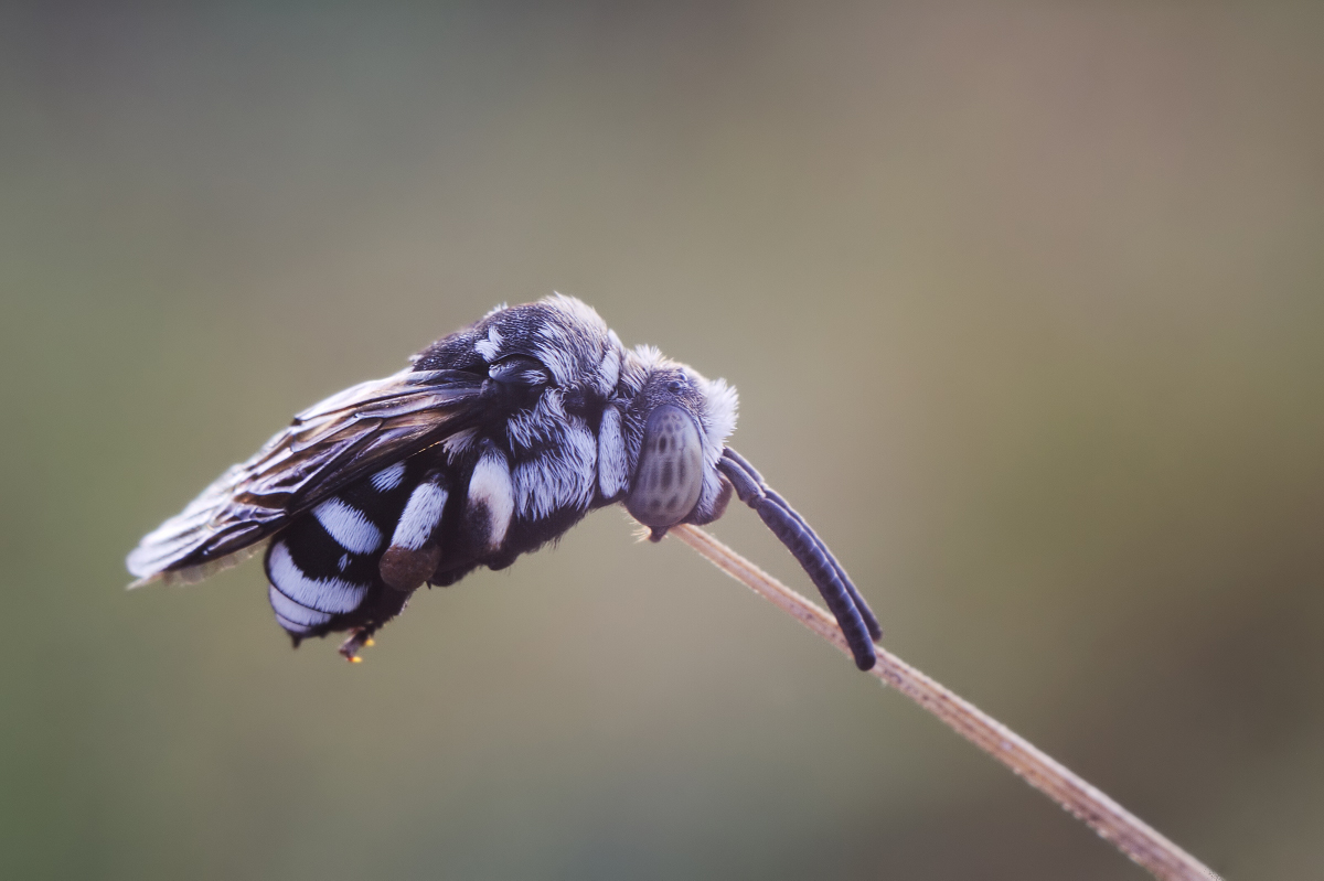 Сегодня утром удалось выбраться к морю, нашел парочку спящих пчелок. Такую уже снимал в этов году, но все равно мимо пройти не смог. Пчелка маленькая, в кадре 1.5 см.