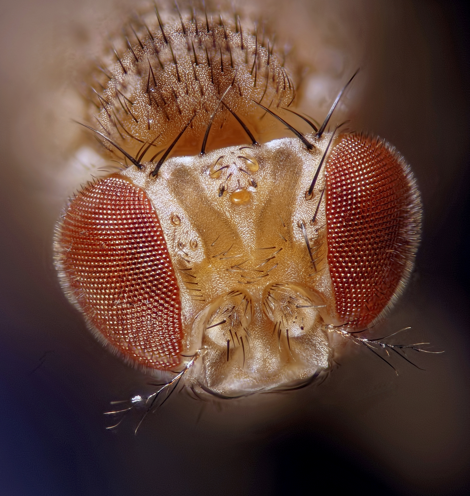На первой любопытно, что на сухом глазу фасетки с выпуклостями, а под каплей выглядят "впуклостями", хотя не везде... Похоже, что показатели преломления поверхности фасеток близки к воде.