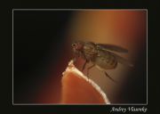Мушка-дрозофила (возможно Drosophila repleta) на срезе грейпфрута. Фотография сделана с помощью перевернутого объектива Pancolar 1,8/50 (от зеркалки Practika LTL3), "присандаленного" к адаптеру конвертера LA DC58F. Вспышка встроенная+самодельный рассеиватель-отражатель.