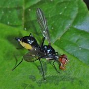 Предположительно это Ходуленожка (сем. Micropezidae).