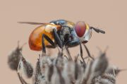 Не похоже на монтаж, думаю просто повезло коллеге: пчела уселась на плод, а он оторвался. GeorgNik, таки перешарпил, выложи полный исходник, сделаю грамотно, жаль хороший кадр.