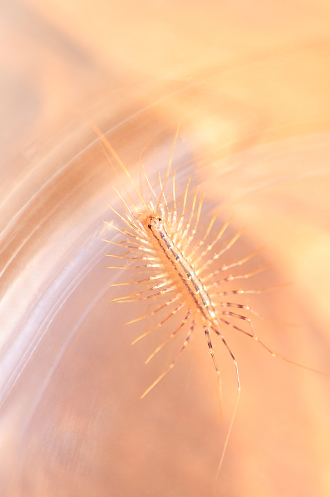 Взрослая обыкновенная мухоловка достигает в длину 35—60 мм. Тело сплюснутое, разделено на 15 сегментов, каждый из которых несёт пару ног. Последняя пара ног мухоловки самая длинная (у самок может вдвое превышать длину тела) и похожа на усики, поэтому не всегда можно сразу определить, где у многоножки голова, а где задний конец тела. Усики мухоловки очень длинные, хлыстообразные, состоящие из пятисот-шестисот сегментов.