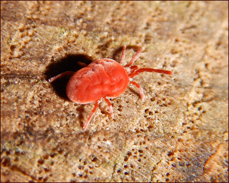 23.02.2016 Последние дни февраля были довольно тёплые. На прогулку по парку Пратер я взял зеркальную и компактную камеры. Подобраться к этому непоседливому существу между стволом давно срезанного дуба и его пнём удалось только с компактным Nikon AW 120. Качество слабое. Уже смеркалось поэтому фотографировал со встроенной вспышкой. Размер красного клеща был немногим более 2мм.