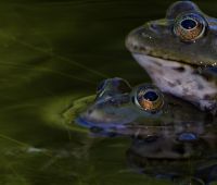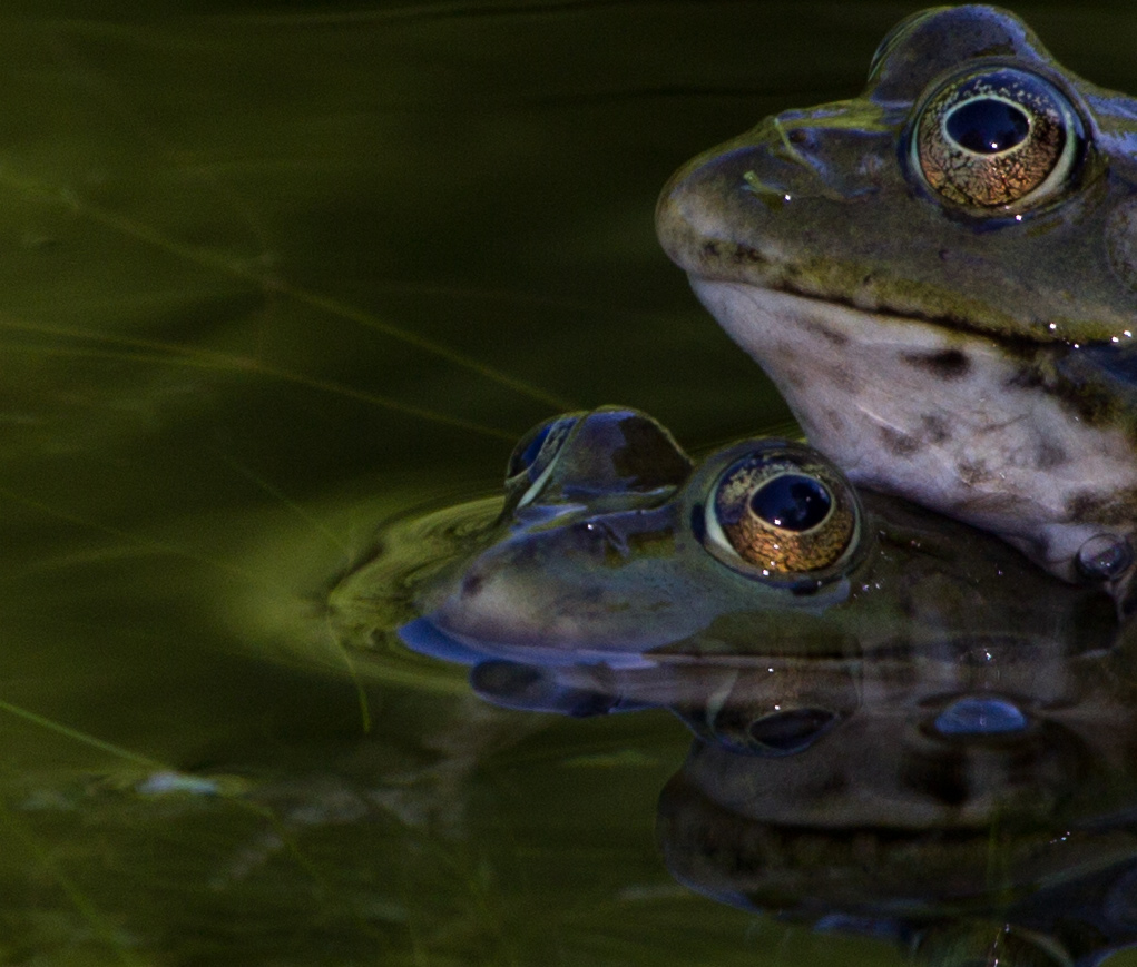 А, если серьёзно: это небо отражается. А в воде - листва деревьев с противоположного берега пруда. Специально освещение ловила .