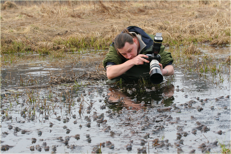 Вчера съездила в лес, где мы с тобой (Светой и Юрой) лягух снимали. Несколько дней назад только в отдельных кладках головастики вышли на волю, а вся поверхность воды была покрыта созревающей икрой, а вчера - ничего! Пару комочков слизи на дне. И всё! Сожрали! Ну, конечно, мелкие головасты плавают, около сантиметра. Уже без наружных жабер.