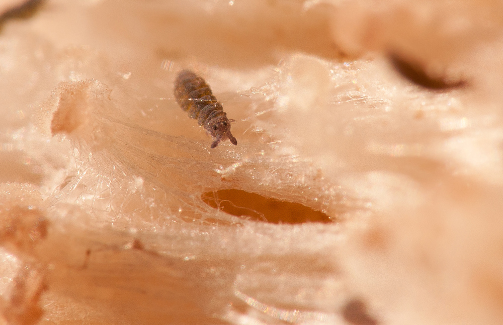 Zebra: Коллемболы и какие-то панцирные(?) клещики. А на чем это они? Что за сахарная вата?