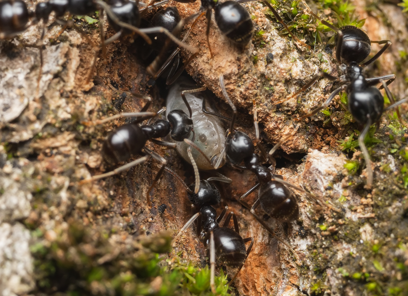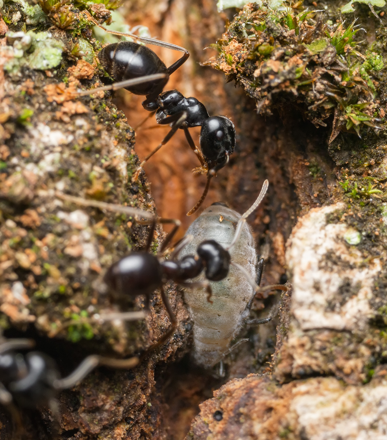 Заметил что муравьи кучкуются на коре каштана, потом разглядел, что в коре кто то есть и понял, что это тля. Точно не знаю как называется, может древесная?