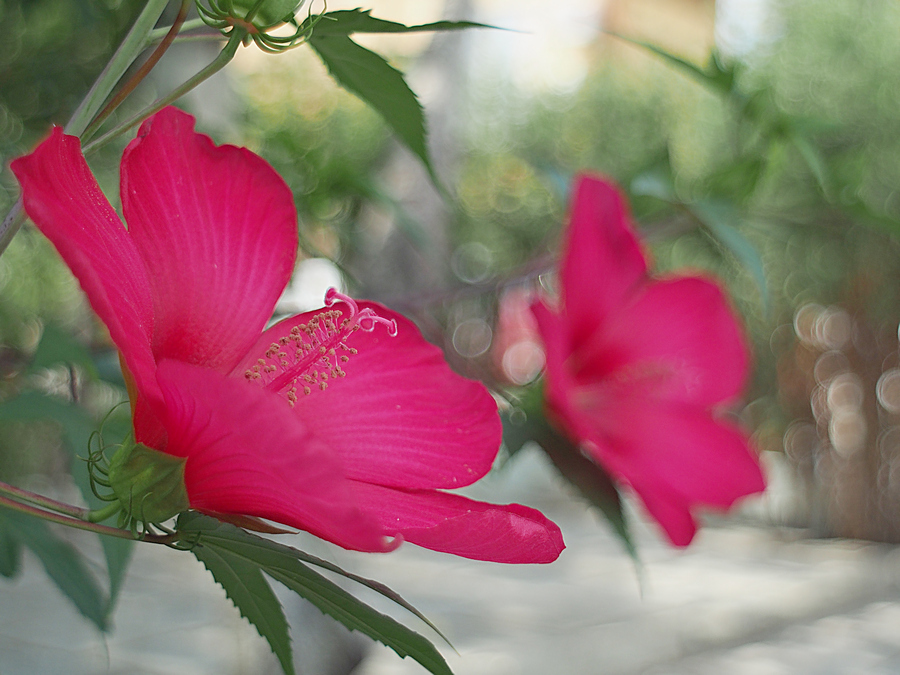 Ещё в далёком, двухтысячном году, из всей богатой растительности Анапы меня более всего впечатлил гибискус "Царь-колокол". Цветки его могут достигать размеров человеческого лица. Они недолговечны, но куст цветёт обильно и появляются всё новые и новые бутоны. Преобладают кармино-пунцовые тона, но бывают и розовые цветки. В этом году очень крупные экземпляры, к сожалению, мне не встретились. Сейчас часто царь-колоколом именуют похожие сорта, но с более мелкими цветками разнообразной окраски.