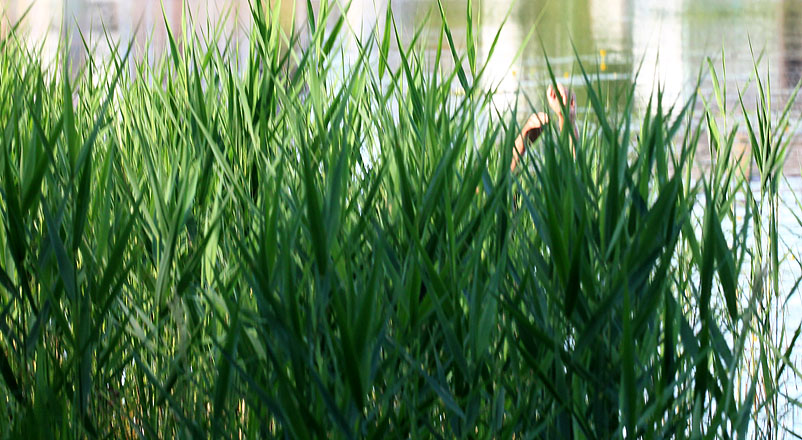 Но радость была преждевременной...Маленький участок берега озера был приспособлен для купания туристов, а весь остальной берег был недоступен...Крапива выше человеческого роста, затем тростник...