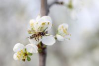 Нашла несколько кадров с опылителями. На боярышнике и на сливе.