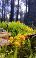 А вот другой миксомицет. Бросается в глаза другой цвет и не столь выраженные "плодовые тела" (спорангии? псевдоэталии?). Слизевики, или миксомицеты (лат. Myxomycetes), — класс настоящих слизевиков (Mycetozoa). Подробнее можно прочитать здесь:https://ru.ruwiki.ru/wiki/Миксомицеты
