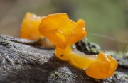 Ещё один миксомицет, обнаруженный в нескольких метрах от двух предыдущих. В отличие от них, этот слизевик белый. Справа на палочке хорошо видна слизь - цитоплазма слизевика, из которой и дифференцировалась "творожистая масса", в которой будут образованы споры.