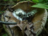 Ой, оказывается я все неправильно поняла. Я думала, что эта белая соль, снег, сахар (нужное подчеркнуть) и есть гриб-паразит вроде плесени, растущий на этой семейке нормальных таких грибочков-крепачков. А оказывается, что как раз эта семейка самая что ни на есть паразитическая.
