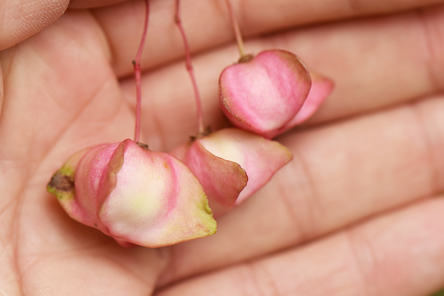 Упустив из виду, что по вторникам оранжерея ботанического закрыта, больше времени было на прогулку по саду. Забрался в заросли бересклета и обалдел от количества видов, но вот с глазами оказался только БЕРЕСКЛЕТ БОРОДАВЧАТЫЙ, зато другой вид удивил размером коробочек
