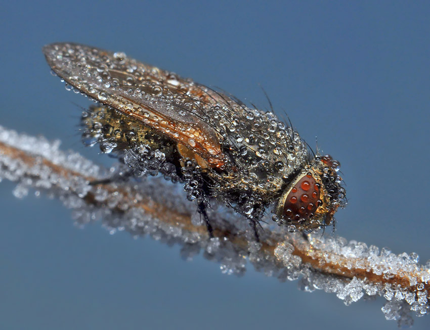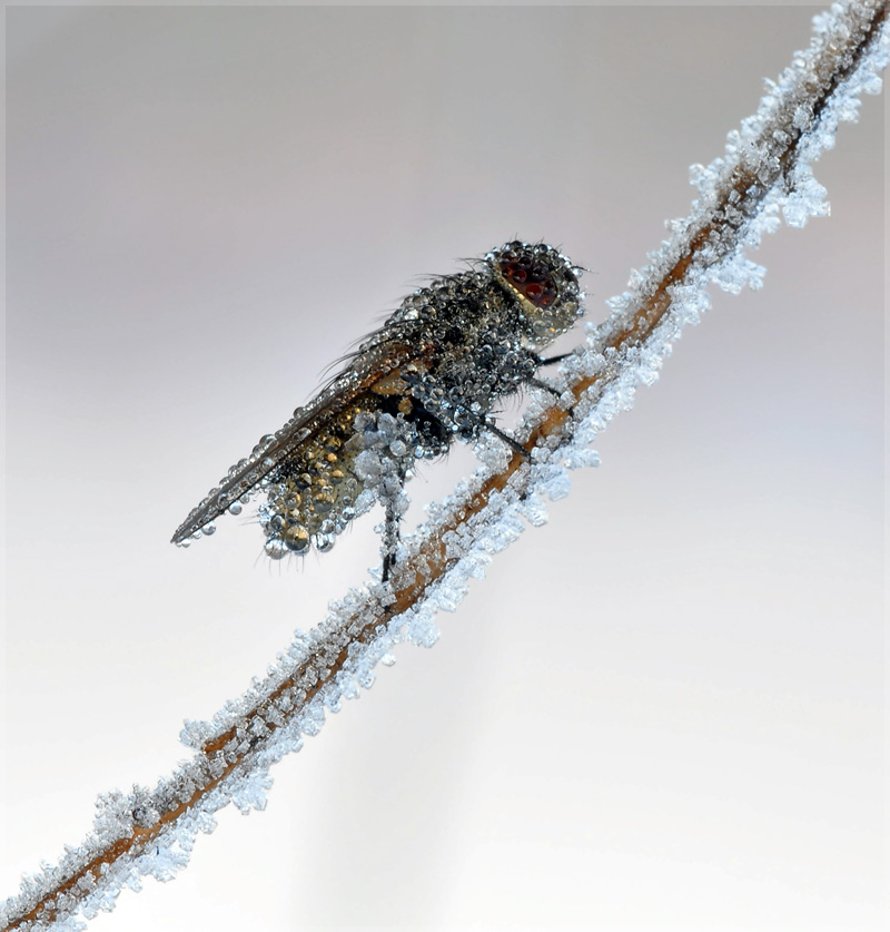 Да уж! совершенно необычное явление! То есть какой-то бешеный паук сплел паутину для бешеной мухи, а тут возьми да и выпади иней! Ну и с утречка к ним - фотограф! ???