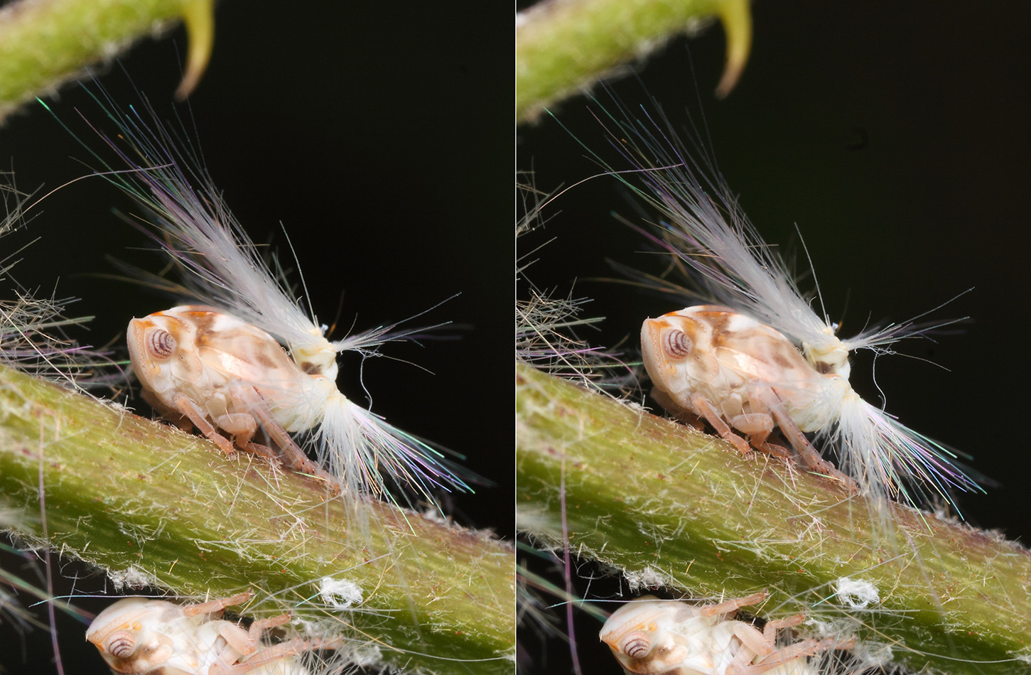 Личинку цикадки-бабочки японской (Ricania japonica) я недавно показывал, а вот ещё несколько.