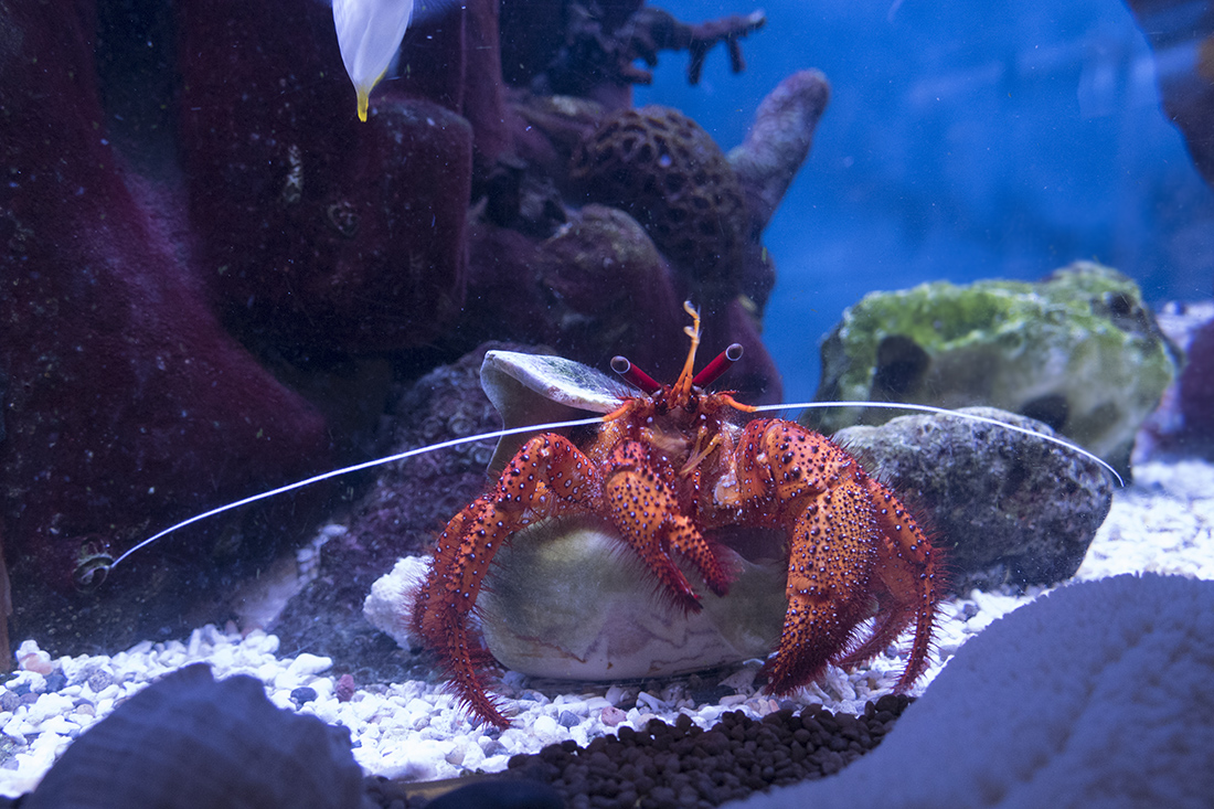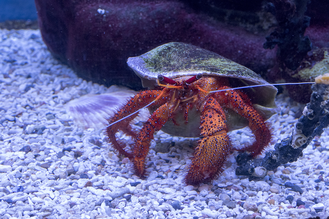 Рак–отшельник белоточечный (Dardanus megistos). Снят в экзотариуме московского зоопарка.