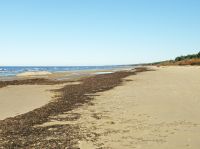 Когда к берегу пригоняет свежие, оторванные листья или скорее веточки этого растения, то пузыри есть и цвет зелено коричневатый , а эти уже высохшие, поэтому черные и без пузырей. Местами кучи этих водорослей по пол метра в высоту. Скорее всего на центральных пляжах Майори и Дзинтари их в сезон убирают, но этоn район, где снимал , центральным не является и похоже, что горы водорослей не убирали не один год ,да и штормов осенью не было, которые обычно и уносят все обратно в море.