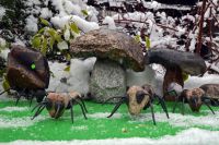 viktor sl: Подбные работы, по моему одного автора и продающихся ,судя по приклеенной цене ,сейчас перед рождеством видел в нескольких местах. Туловище из камня, а ноги ,усы ,хвосты из металла. Работы разные ,животные ,люди, птицы. Размером и с кулак и двухметровые . Интересного и необычного сейчас по городу можно встретить очень много. Самое ,что мне показалось достойным потихоньку выложу на ОФТОПИК Прикольные снимки. Ну а этого красавца еще сюда .