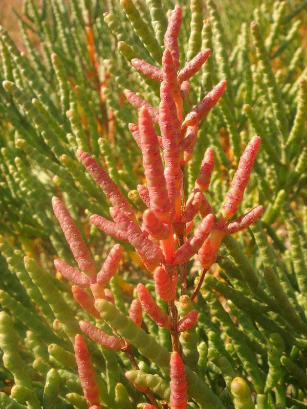 Местные называют эту травву "вороньи лапки". Растет на засоленной почве и сама соленая.