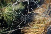 Мелкий комарик-звонец в утренней придорожной траве.