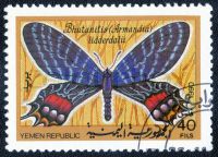 Работа представляет собой реконструкцию. Бабочка снята на одной из выставок бабочек. Совмещена с цветком из ареала обитания этого вида. Интересно, что эта редкая бабочка запечатлена на марках нескольких стран. Так вот практически на всех марках бабочка изображена именно в этой позе