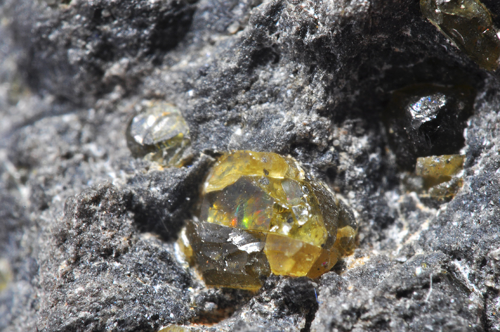 Александр Зыков (ZAE):Симпатичные кристаллы! На фото 5 оливин, возомнивший себя огненным опалом?