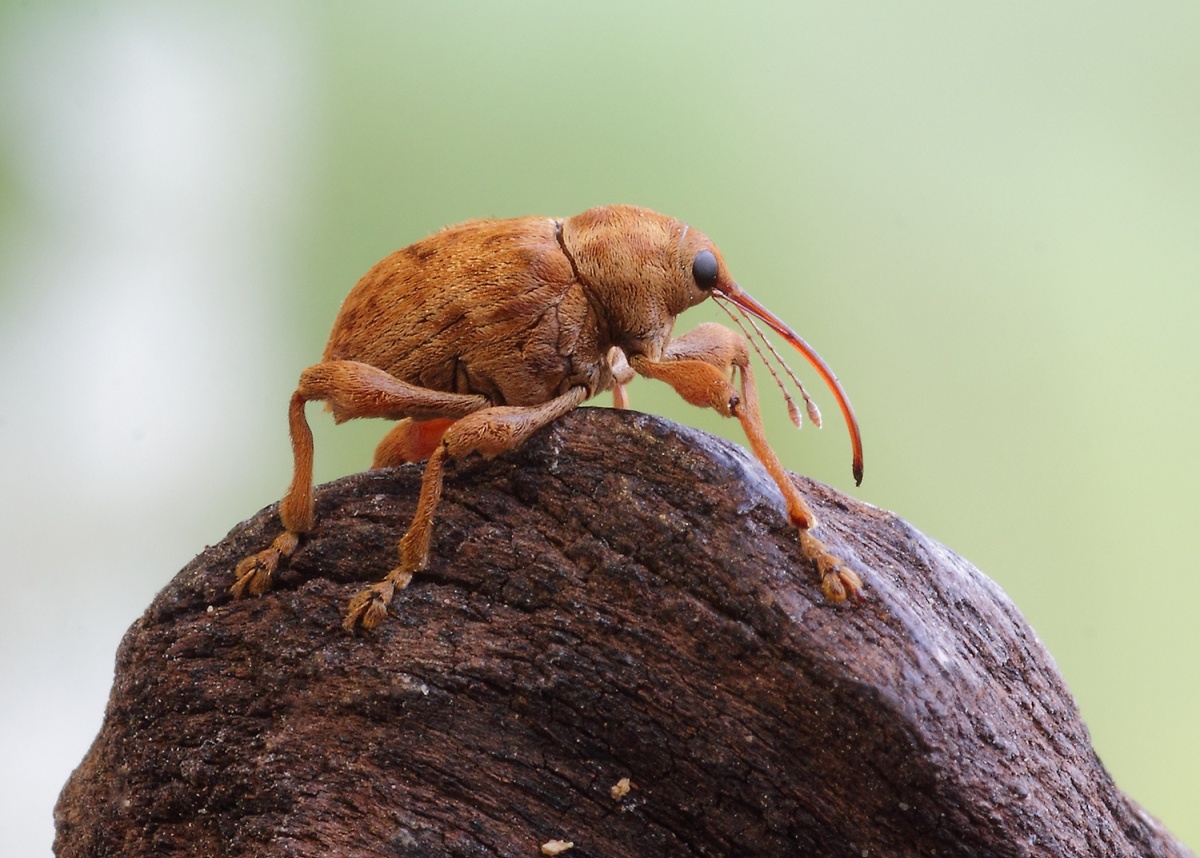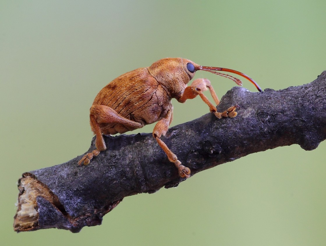 Конечно на орехе но именно этот был найден на траве. Снять на длинной выдержке в ветреную погоду с ореховой веточки невозможно, поэтому он был посажен на присаду, которая не колышется на ветру