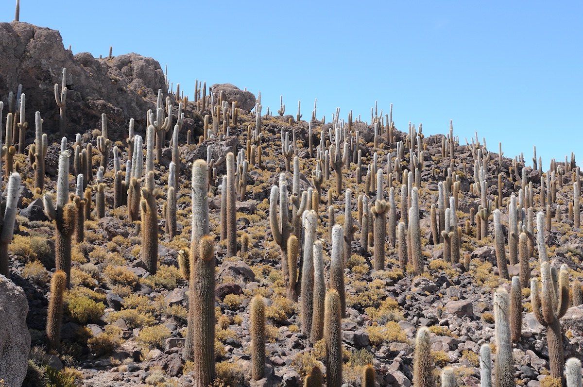 Эти огромные кактусы произрастали на островах, расположенных в "акватории" высохшего соляного озера Солар де Уюни