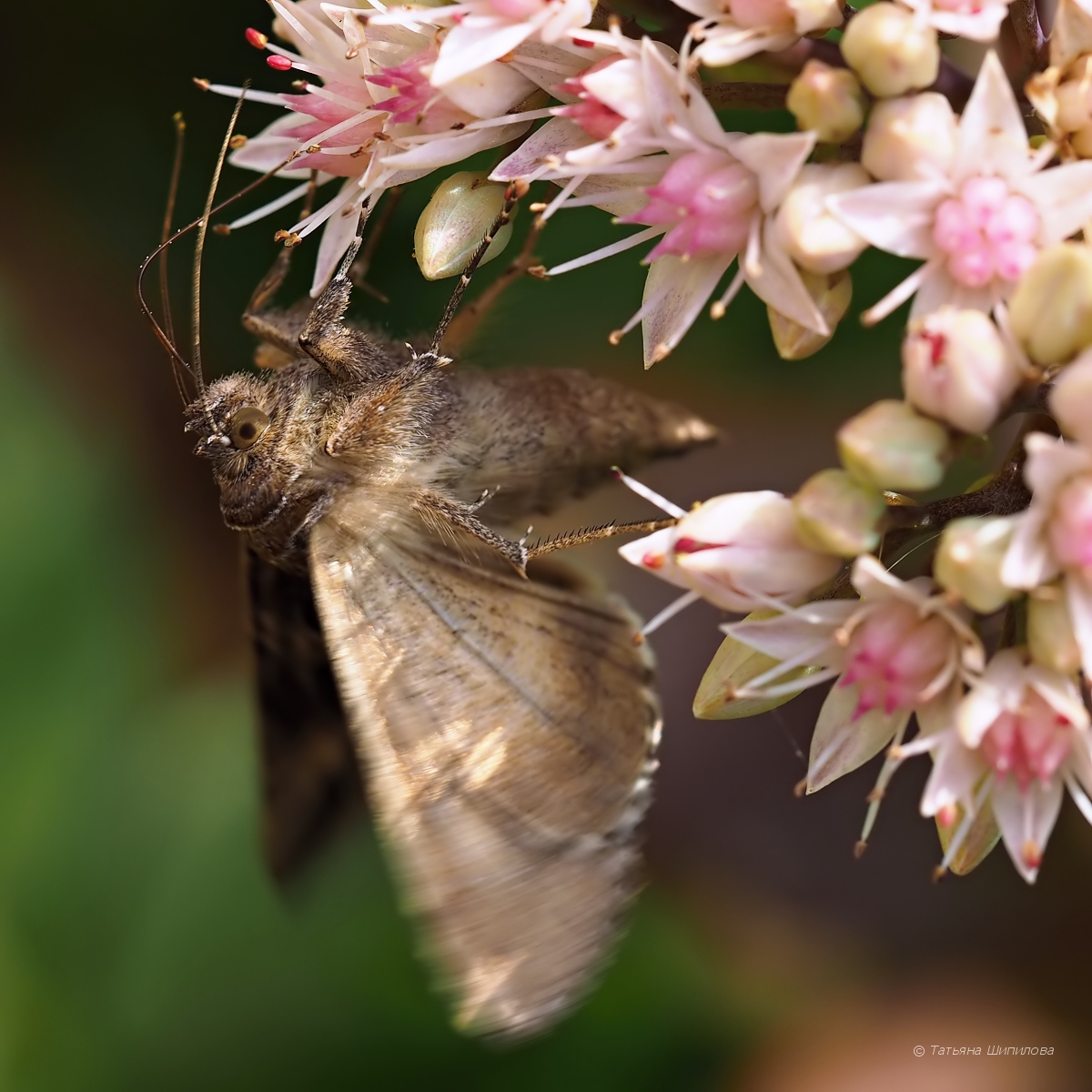 Бабочку я снимала у себя на даче. Сначала пыталась преследовать летунью, но потом просто села рядом с очитком (седум) и ждала прилёта шустрой модели...