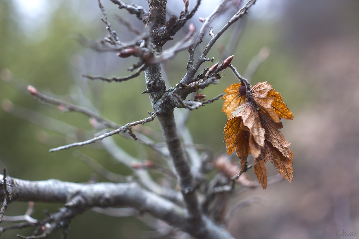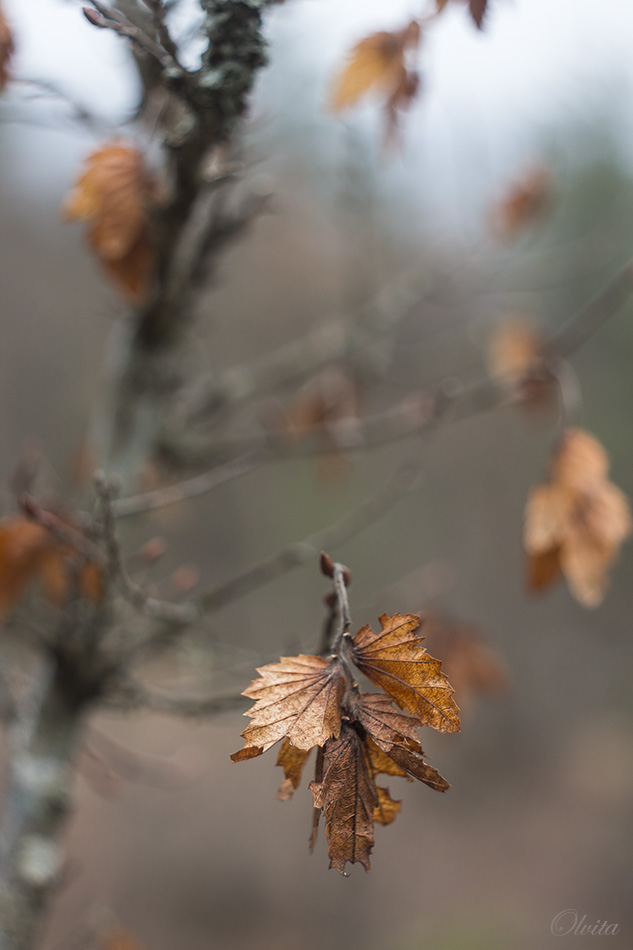 Единственное, за что цепляется взгляд в зимне-крымском лесу без снега - кусты грабинника с остатками листьев и семян Сосны и можжевельник не в счёт, но они создают неплохой фон...