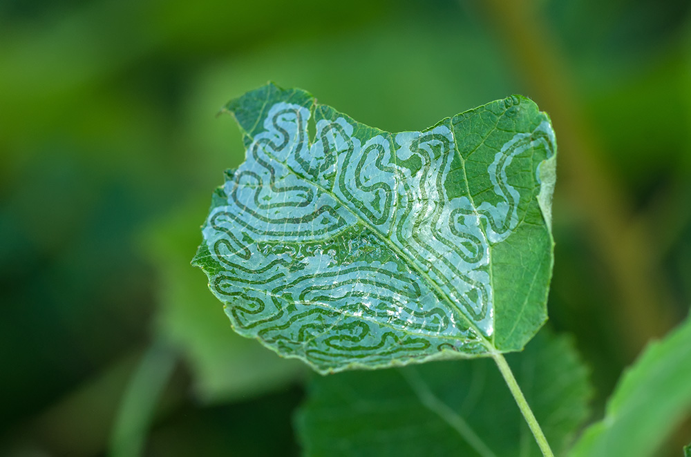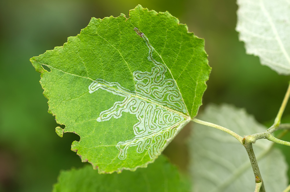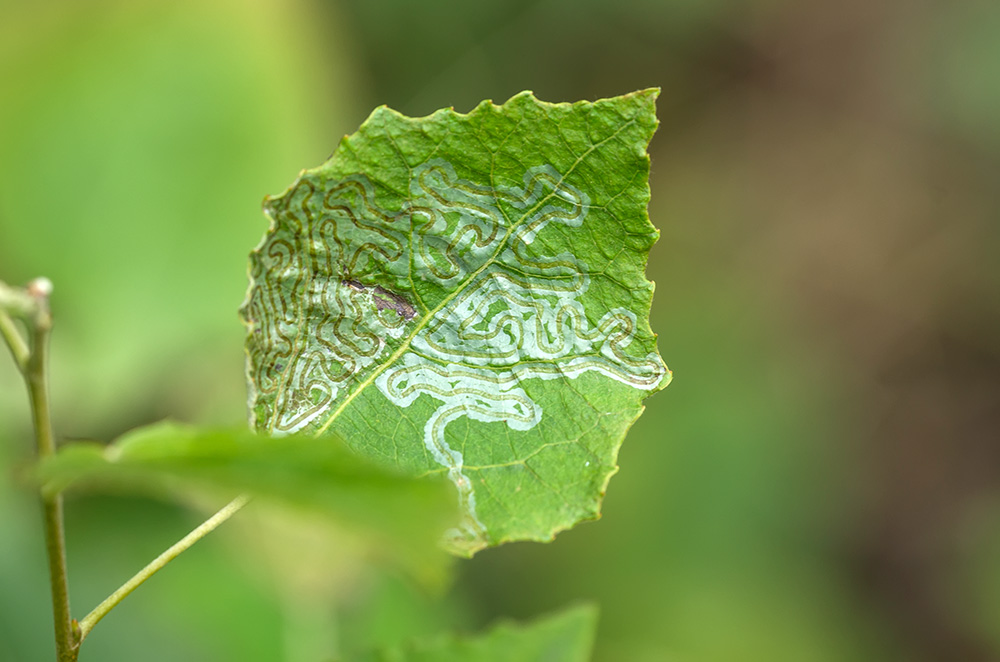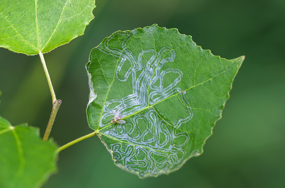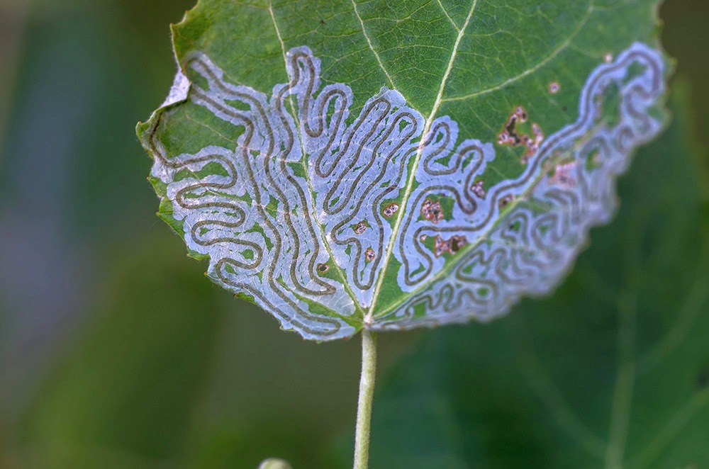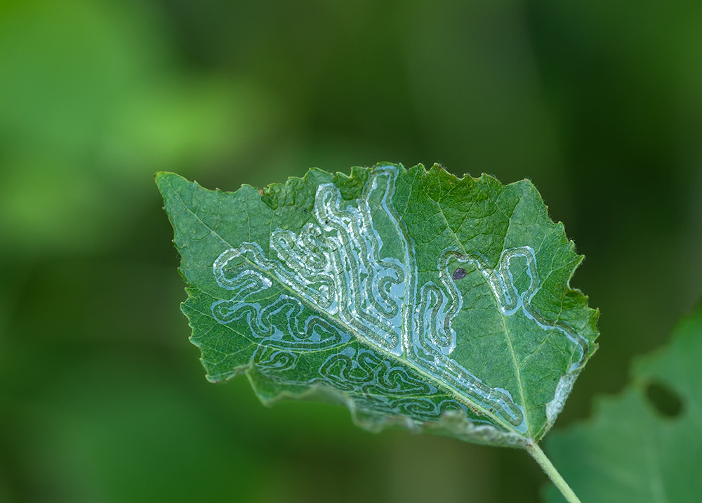 Под большой и старой осиной на молодых побегах листья имели такой рисунок. Кто оставил свой след - я не увидел. Но рисунки мне очень понравились!