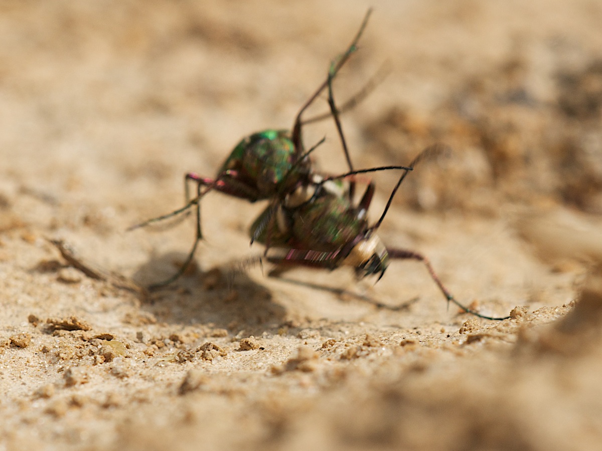 "Нежный" обхват огромными челюстями за переднеспинку - фирменный элемент ухаживания у жуков-скакунов