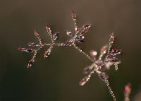 Не раз пробовал хорошо сфотографировать капли утренней росы на травинке, но всегда не слишком удачно. Во-первых, веточки этих травинок торчат в разные стороны далеко друг от друга и требуется очень большая ГРИП. Во-вторых, минимальное движение воздуха, в том числе и от моего дыхания, раскачивает длинную и неустойчивую травинку, что мешает снимать при большой выдержке (диафрагму-то нужно закрыть для увеличения ГРИП).