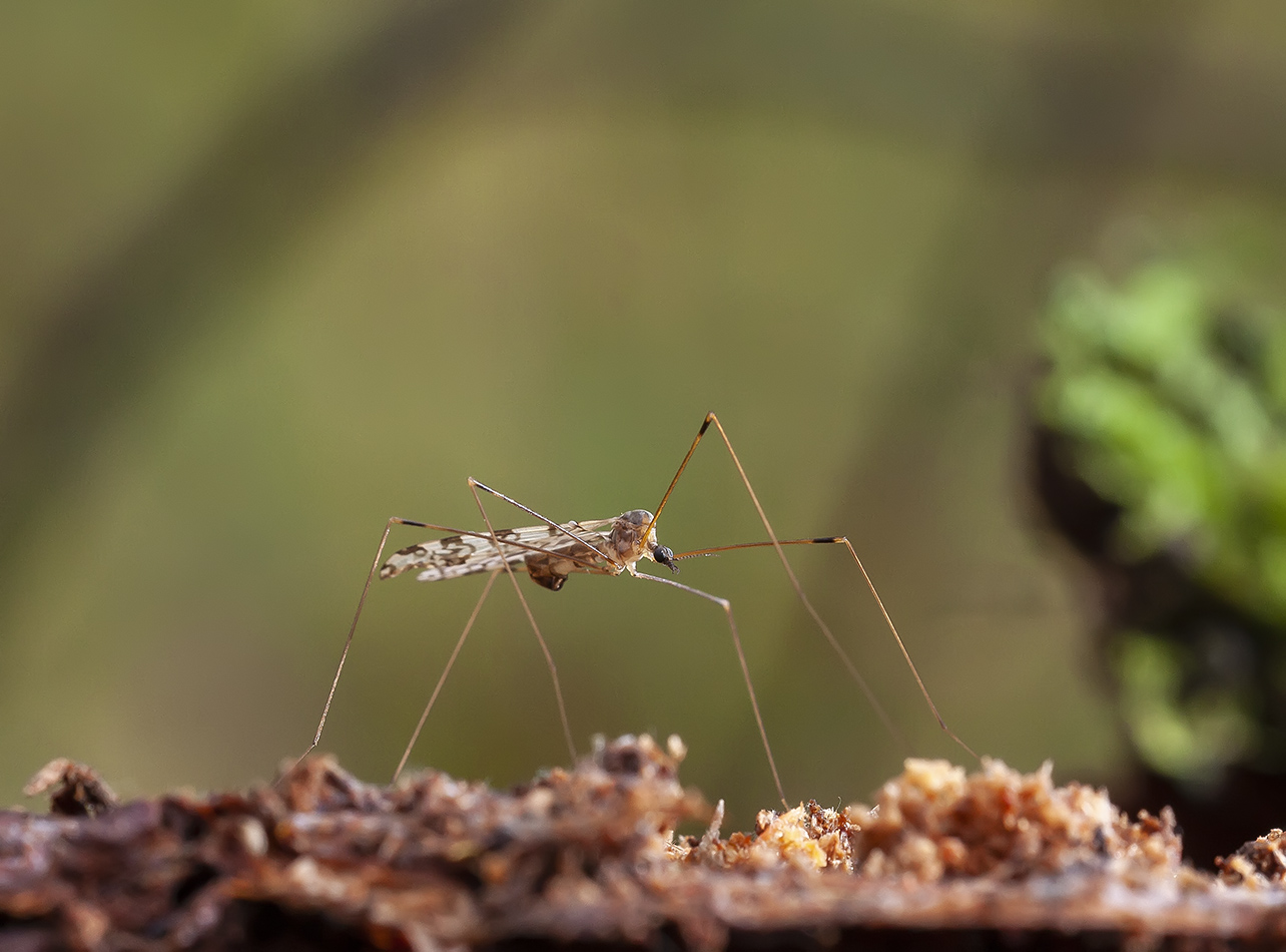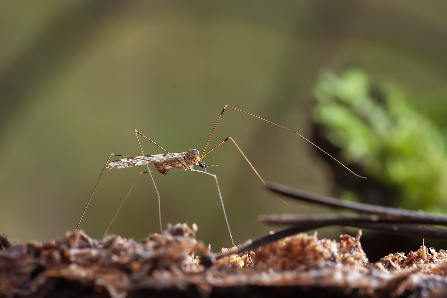 Потревоженный в зимнем убежище, комар-долгоножка (Tipulidae) сел на пенёк и долго соображал: куда бы отправиться, подальше от этого несносного фотографа?