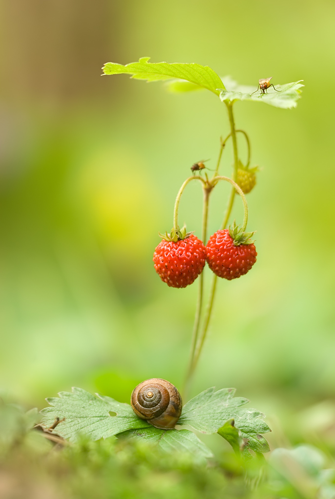 Улиток и в самом деле было много. Мухи сами прилетели. Земляника размером примерно с ноготь большого пальца (моего)