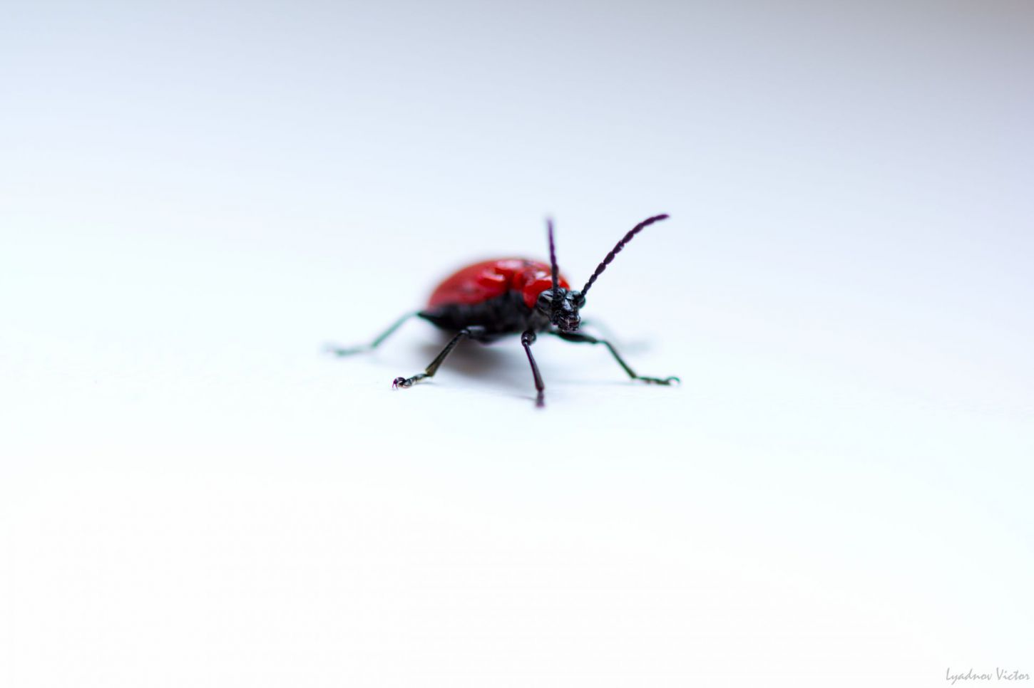 Модель - трещалка лилейная - Lilioceris lilii (Scopoli, 1763), сем. Листоеды (Chrysomelidae).